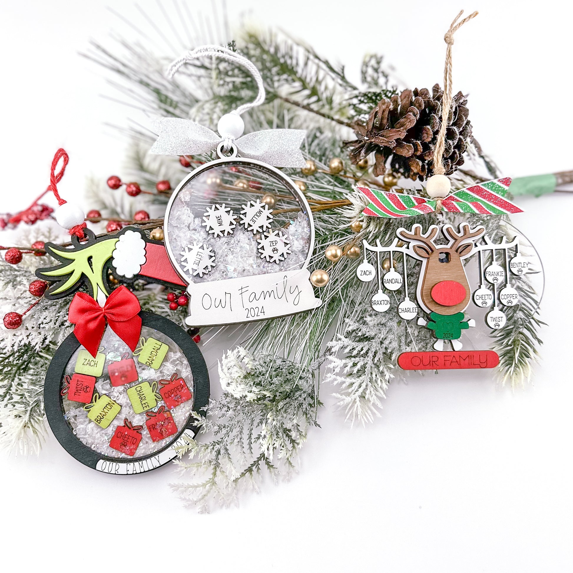 - Front of ornament can not be changed. All ornaments will ready "Our Family" with current year reflected.