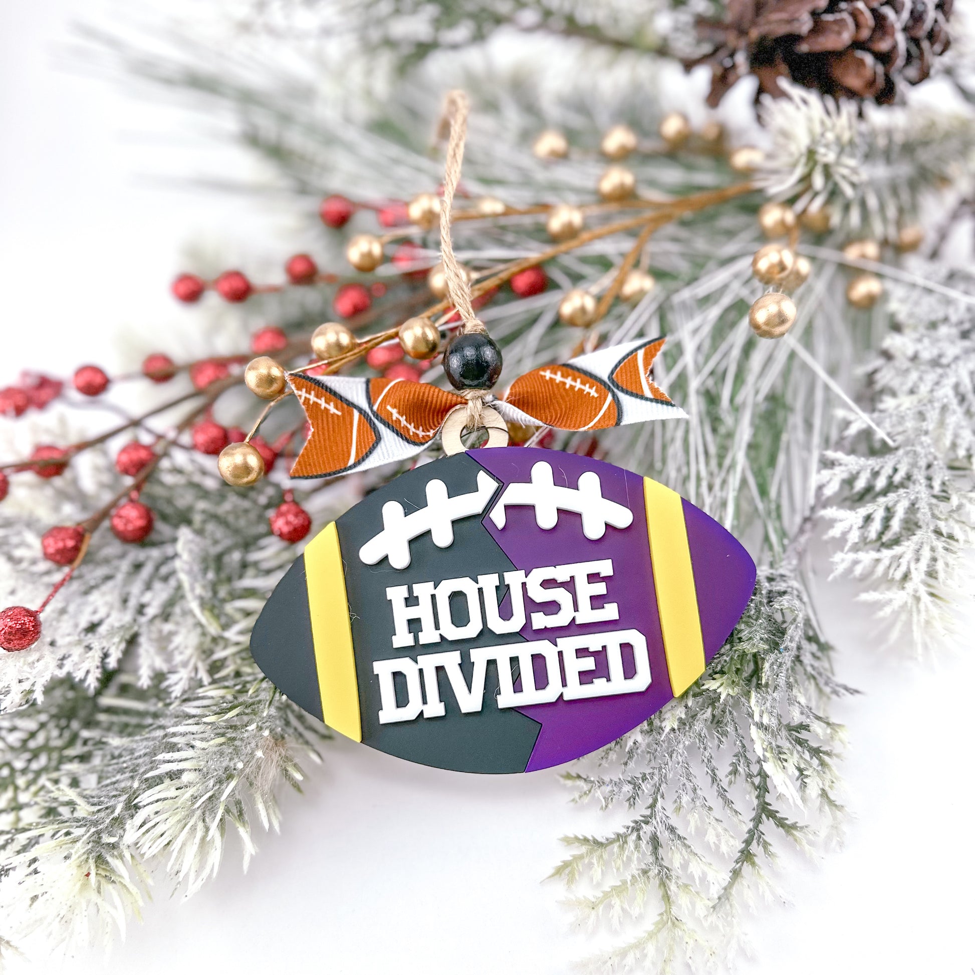 - Adorned with twine hanger, wood bead and ribbon